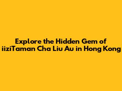 Hey guys! Ever heard of iiziTaman Cha Liu Au in Hong Kong? If not, buckle up because you're in for a treat. This isn't your typical tourist trap; it's a real, authentic slice of Hong Kong life, tucked away from the hustle and bustle. In this article, we're diving deep into what makes iiziTaman Cha Liu Au so special, why you should visit, and how to make the most of your trip. Get ready to discover a side of Hong Kong that most tourists miss!