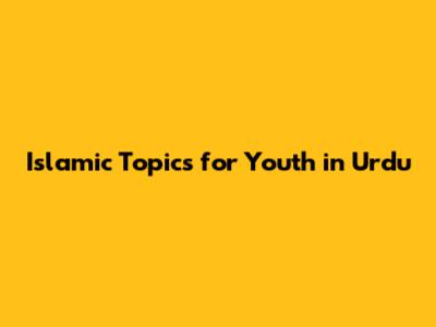 Islamic Topics For Youth In Urdu