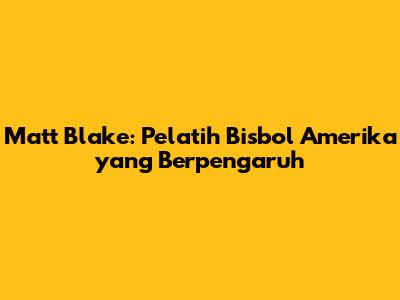 Matt Blake, seorang tokoh yang sangat dihormati dalam dunia bisbol, telah meninggalkan jejak yang tak terhapuskan pada olahraga tersebut. Sebagai seorang pelatih, Blake dikenal karena pendekatan inovatifnya terhadap pengembangan pemain dan kemampuannya untuk memaksimalkan potensi atlet. Artikel ini akan membahas perjalanan karier Matt Blake, metode pelatihannya, dan dampak signifikan yang telah ia berikan pada bisbol Amerika.