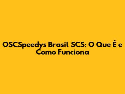 OSCSpeedy's Brasil SCS: O Que É E Como Funciona
