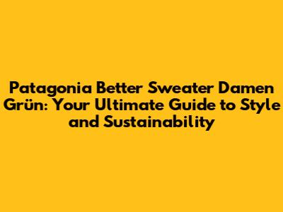 Hey there, fashion-forward folks! Are you on the hunt for a cozy, stylish, and sustainable sweater? Then you've probably stumbled upon the Patagonia Better Sweater Damen Grün – and for good reason! This sweater is more than just a piece of clothing; it's a statement. A statement about your commitment to quality, your love for the environment, and your impeccable taste. In this comprehensive guide, we'll dive deep into everything you need to know about the Patagonia Better Sweater Damen Grün. We'll explore its features, benefits, styling tips, and even some insights into Patagonia's incredible commitment to sustainability. So, grab a warm drink, settle in, and let's get started!
