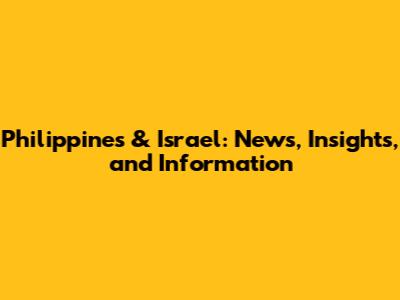 Philippines & Israel: News, Insights, And Information