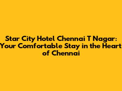 Hey guys! Are you planning a trip to Chennai and looking for a comfortable and conveniently located place to stay in T Nagar? Look no further than the Star City Hotel! This hotel offers a blend of comfort, convenience, and value, making it an ideal choice for both business and leisure travelers. Let's dive into what makes the Star City Hotel a great option for your Chennai adventure.