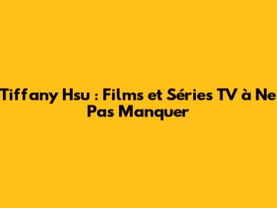 Ce ne sont là que quelques exemples des nombreux films dans lesquels Tiffany Hsu a joué. Chacun de ces films met en valeur son talent et sa capacité à s'adapter à différents rôles. Si vous êtes à la recherche de films avec Tiffany Hsu, ces titres sont un excellent point de départ.